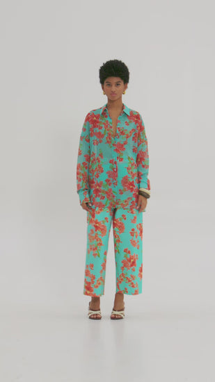 - Pattern με λουλούδια σε aqua φόντο